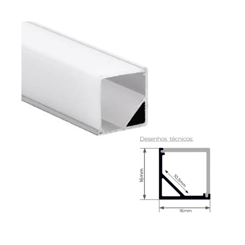 Perfil de Alumínio de Canto c/ Difusor Opalino Quadrado 2M SLIGHTING ESL9006