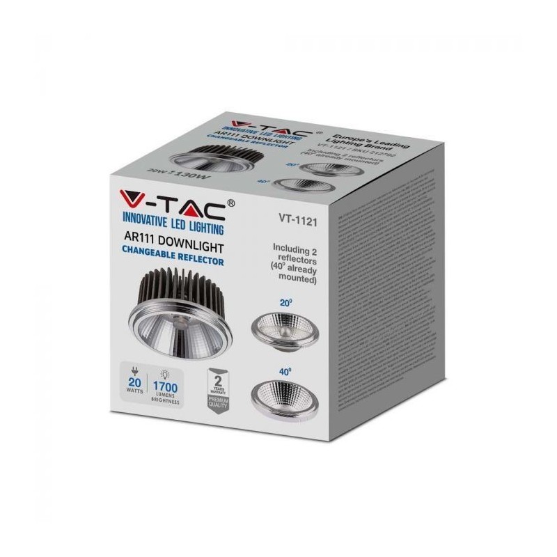 Lâmpada LED V-TAC AR111 20º / 40º C/ Driver 20W Luz Natural (4000K)