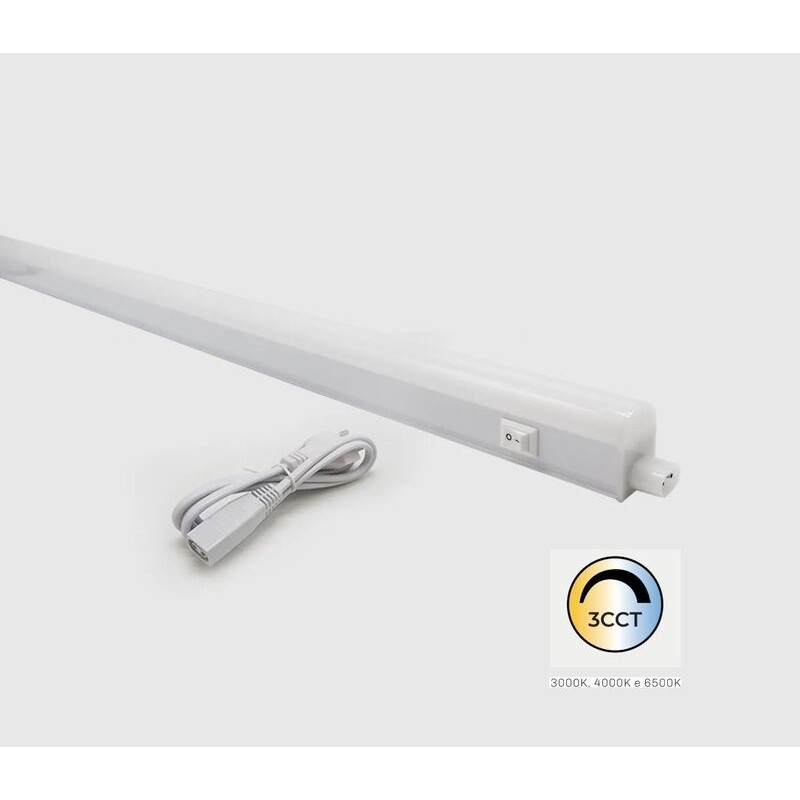 Armadura LED MAXLED T5 120cm 16W CCT3 1600lm c/ Interruptor (3000K-4000K-6500K) 120º IP20