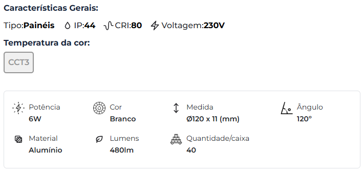 Painel LED ARON 6W Redondo Encastrar Branco CCT3