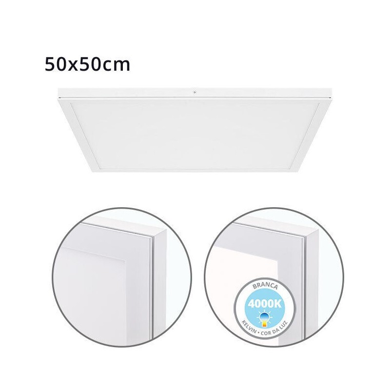 Painel LED Saliente Slim LUMIT VOLTAIRE 48W 500X500mm Branco Luz Natural (4000K)
