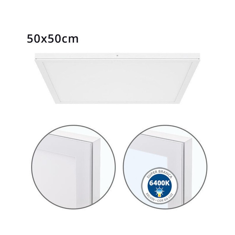 Painel LED Saliente Slim LUMIT VOLTAIRE 48W 500X500mm Branco Luz Fria (6400K)