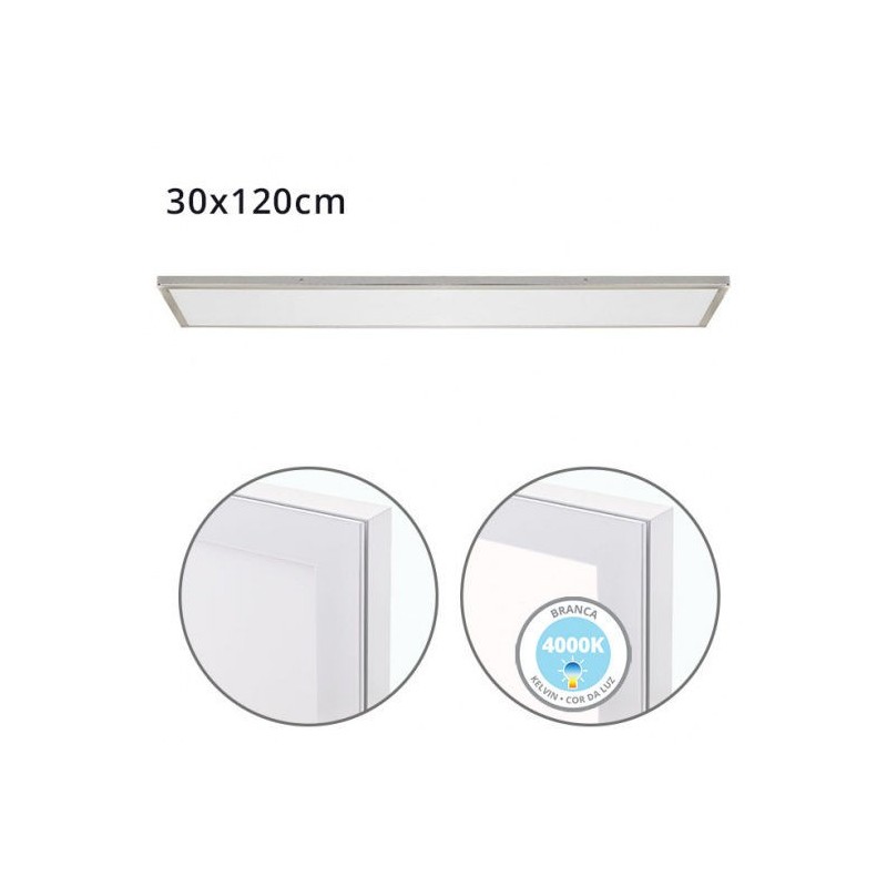 Painel LED Saliente Slim LUMIT VOLTAIRE 72W 1200X300mm Aço Escovado Luz Natural (4000K)