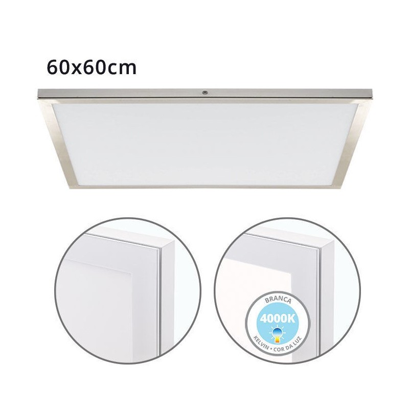 Painel LED Saliente Slim LUMIT VOLTAIRE 48W 600X600mm Aço Escovado Luz Natural (4000K)