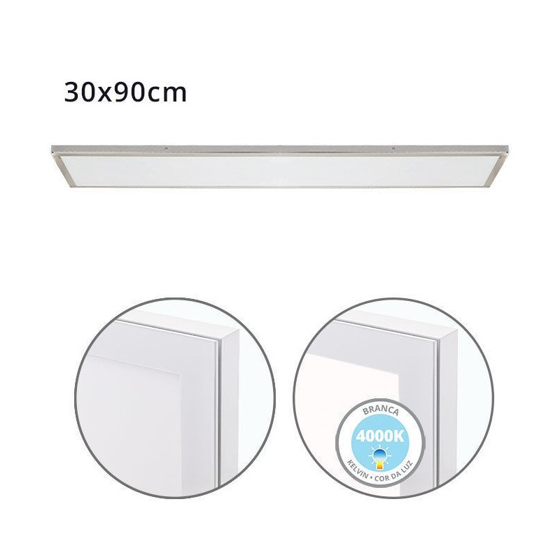 Painel LED Saliente Slim LUMIT VOLTAIRE 72W 900X300mm Aço Escovado Luz Natural (4000K)